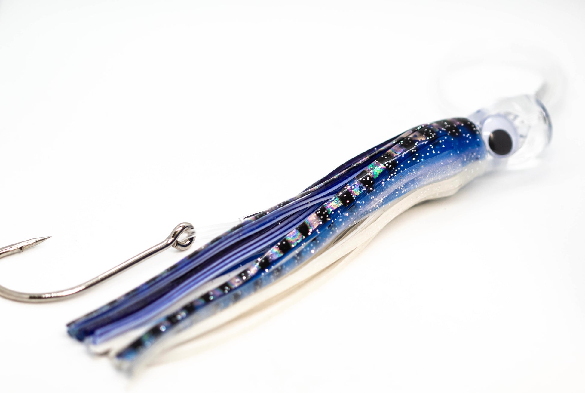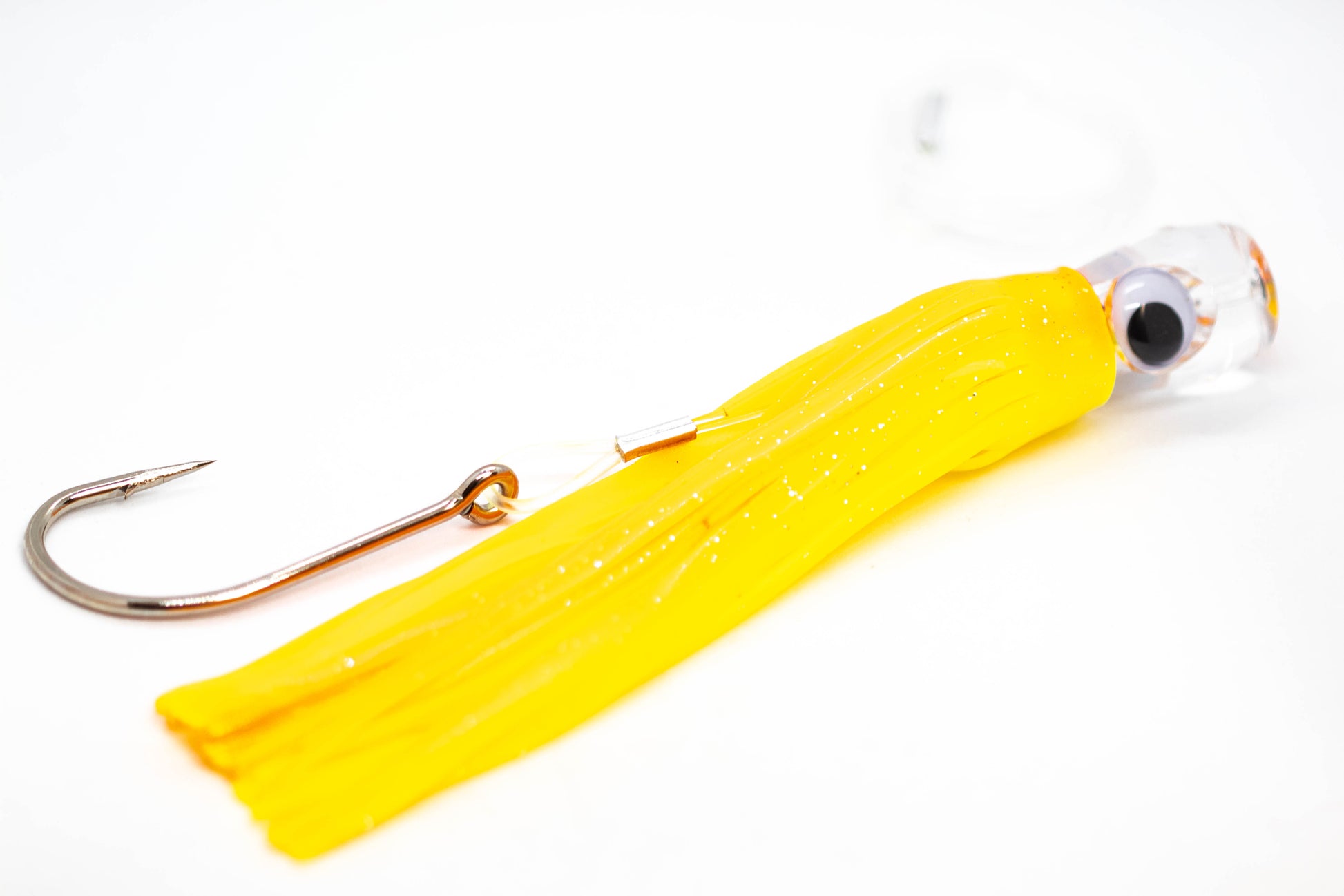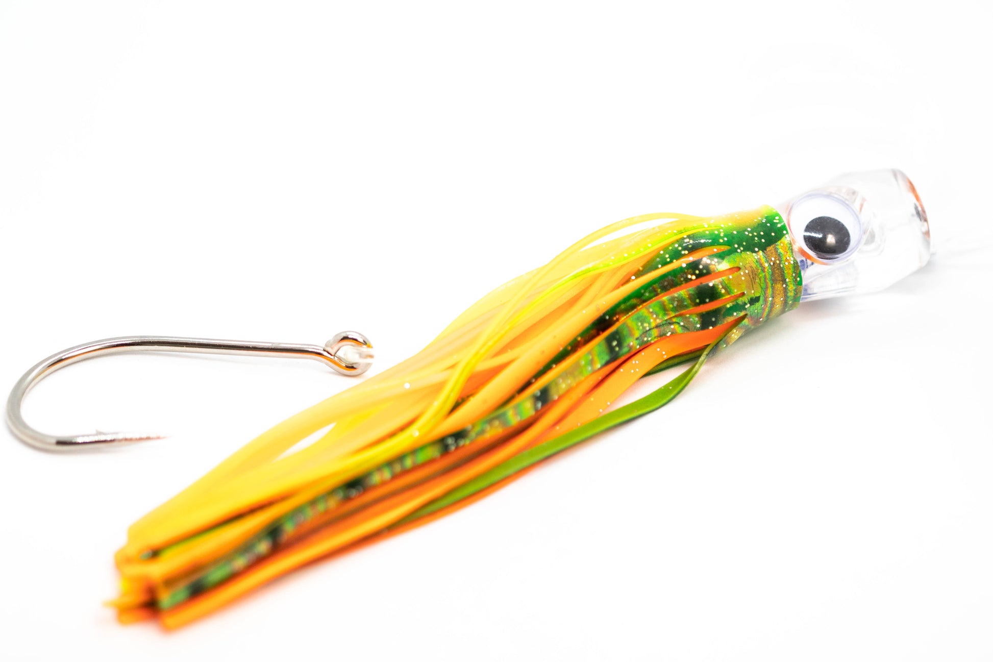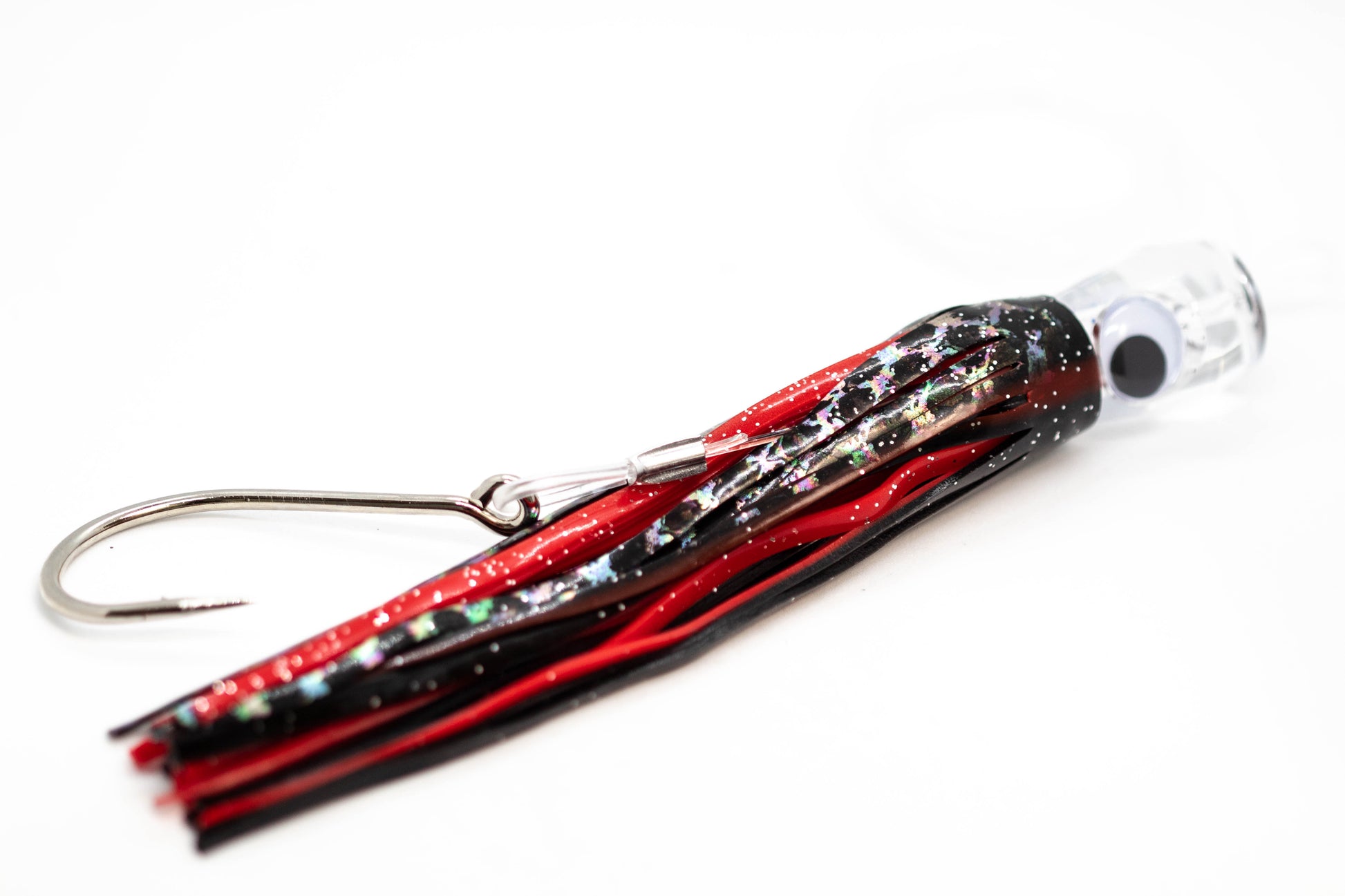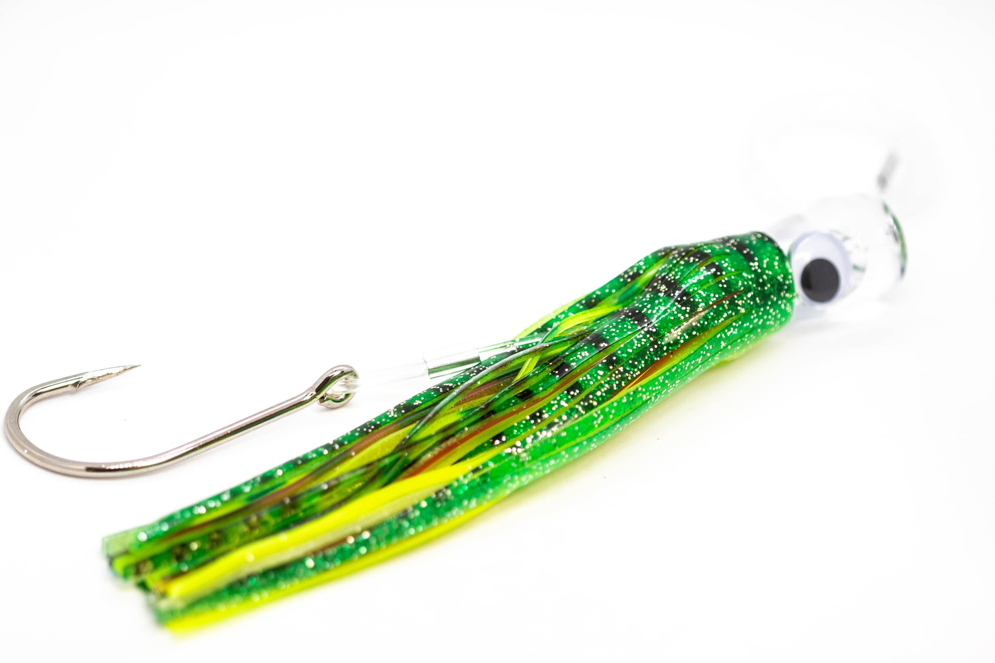 Six 7 inch 3D glass eye lures professionally rigged. Superior construction enables you to fight the largest fish around. Strong swivel connects line directly to the lure, allowing perfect rotation.